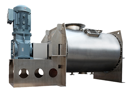 由傳動(dòng)機(jī)械,臥式筒體,犁刀和飛刀組等四部份組成。旋轉(zhuǎn)的飛刀強(qiáng)烈拋散,在犁刀和飛刀的復(fù)合作用下,從而在極短的時(shí)間內(nèi)達(dá)到均勻的混合。